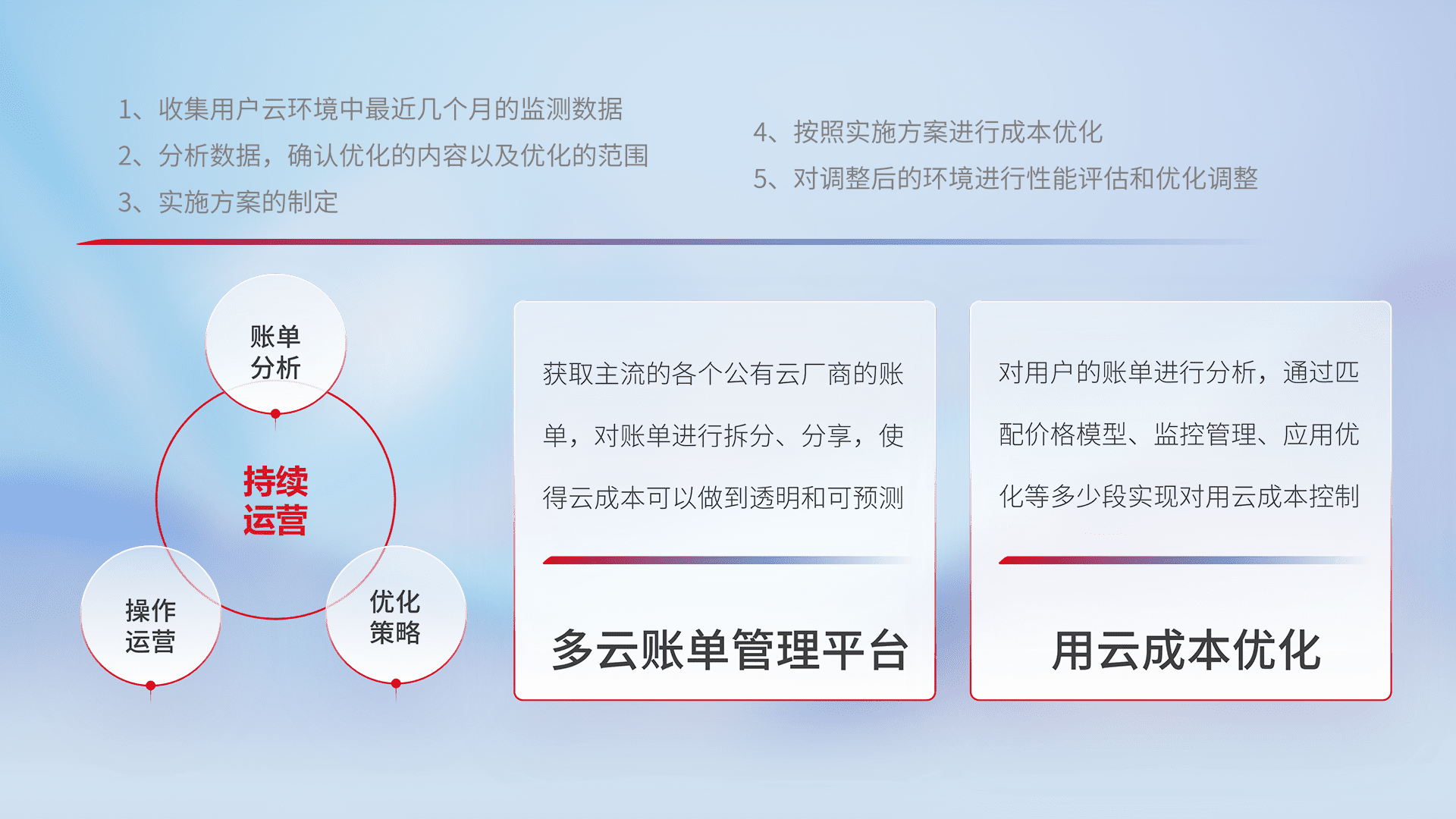 监控业务系统资源开销,,,,对资源的消耗精确计量,,,实现费用的透明化管理,,不断提升资源使用率,,调整资源购买方式,,,,降低资源费用成本,,,用云成本可预测、、、用云费用可优化,,,云资源配额有据可依。。。。